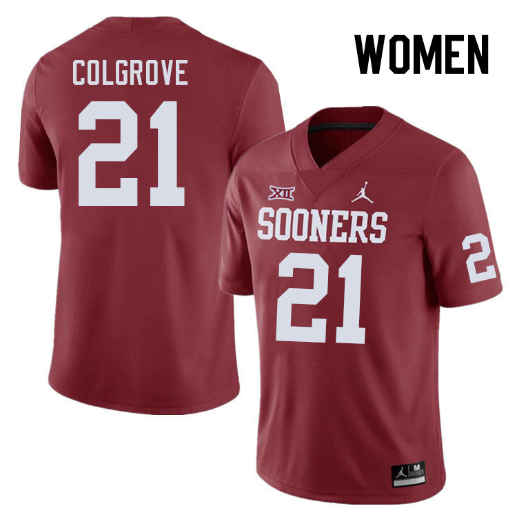 Women #21 Braylon Colgrove Oklahoma Sooners College Football Jerseys Stitched Sale-Crimson