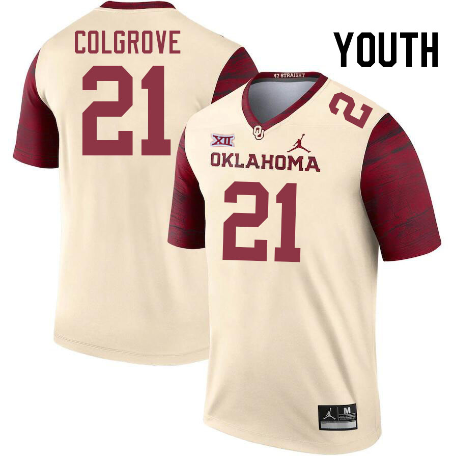 Youth #21 Braylon Colgrove Oklahoma Sooners College Football Jerseys Stitched Sale-Cream