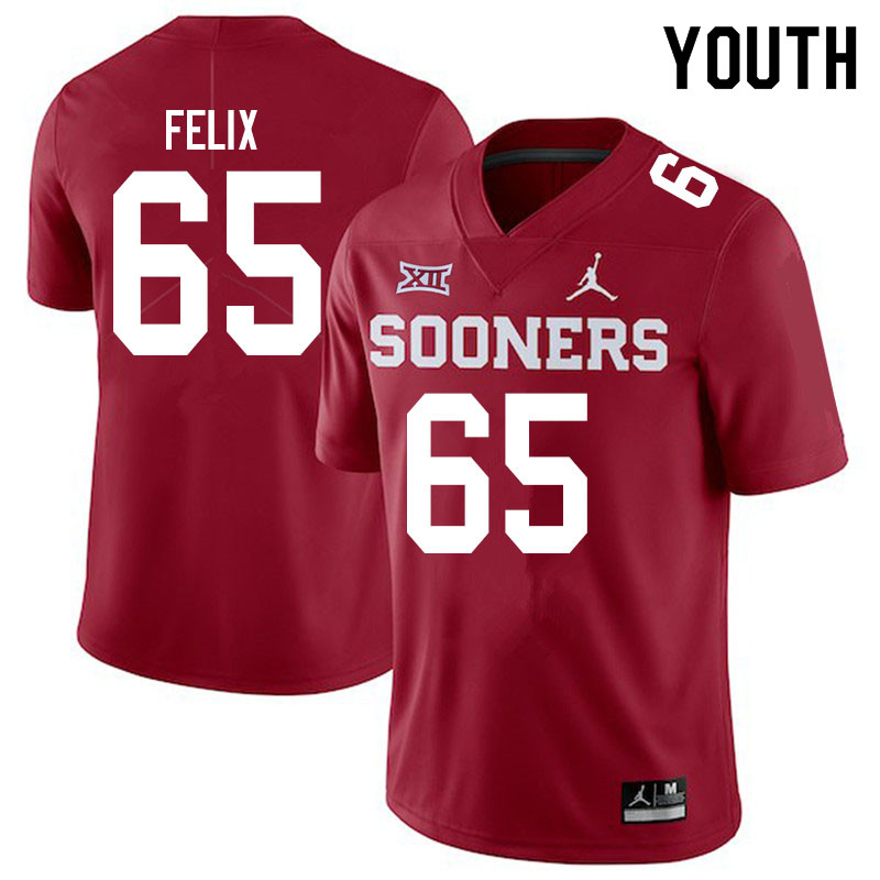 Youth #65 Finley Felix Oklahoma Sooners Jordan Brand College Football Jerseys Sale-Crimson