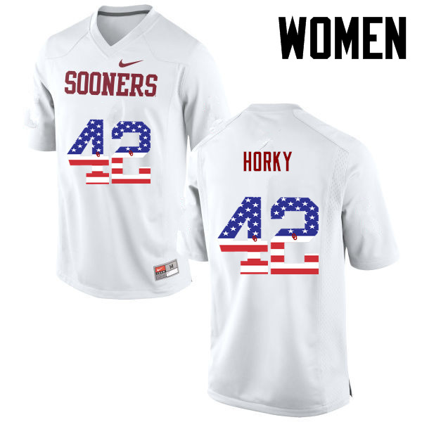 Women Oklahoma Sooners #42 Wesley Horky College Football USA Flag Fashion Jerseys-White